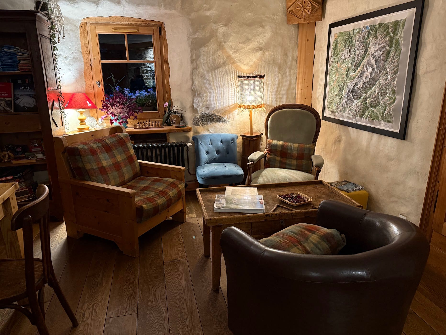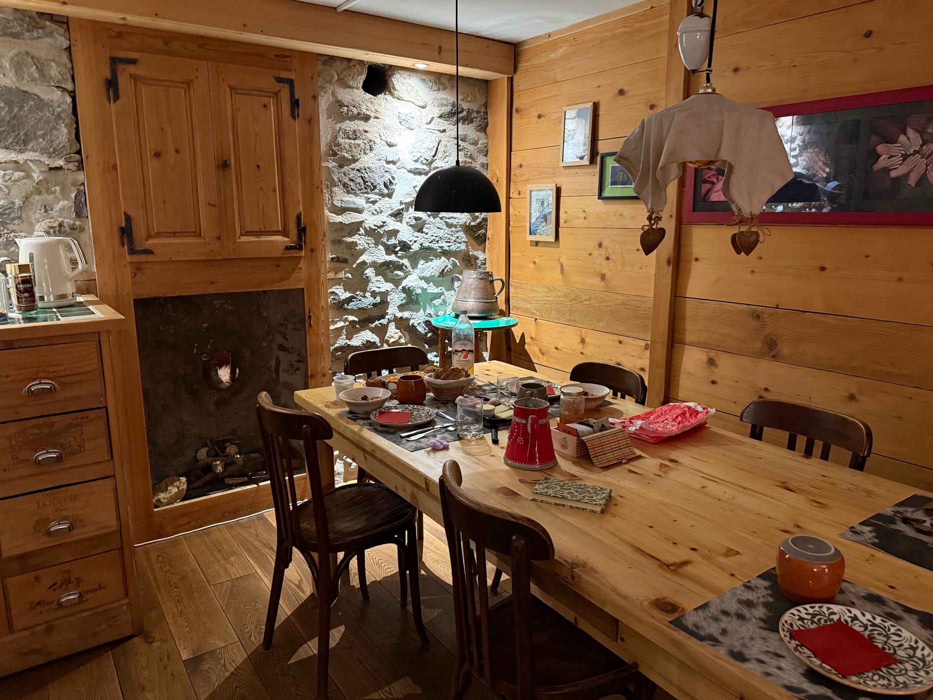 I powiem wam, że to jest najbardziej klimatyczna miejscówka, jaką sobie można wyobrazić! Właścicielka, pani Cecilia Demargne jest osobą starszą i sama ogarnia tam wszystko - od roślin i warzyw, po gotowanie i serwowanie (no dobra, po prawdzie to nie wiem, czy ktoś jej nie pomaga, ale nie widzieliśmy nikogo innego, a taka historia brzmi lepiej, prawda?)! Wnętrze domu opowiada bardzo wiele historii - wspinaczkowych, narciarskich czy po prostu turystycznych. Kosmos: