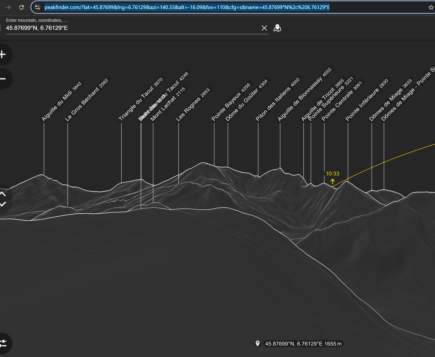 - Już w PeakFinderze, scroll-down (na myszce) - to robi zoom-out, a następnie ustawiam kierunek, w którym patrzyłem (w tym przypadku to był południowy-wschód). I oto efekt:
