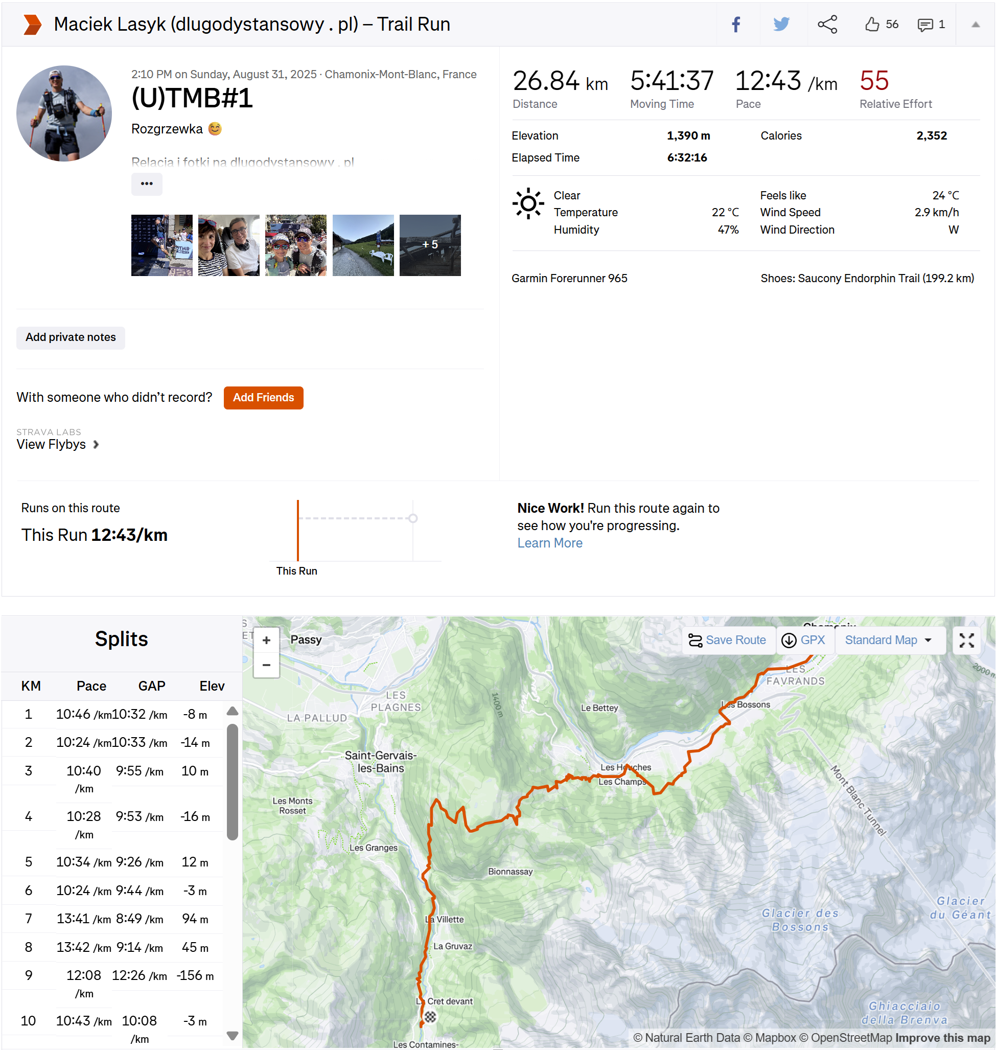 Przyznam, że dla mnie to też nie była najłatwiejsza decyzja, jednak zdecydowanie bardziej mi zależało na zminimalizowaniu ryzyka dnia następnego, niż na purytańskim jebaniu trasy UTMB co do kilometra. I w mojej opinii to była najlepsza decyzja! Między nami nastała cisza - tak na 30 minut 😅