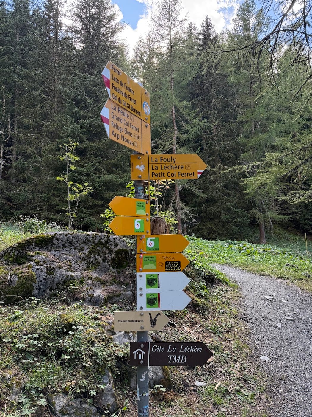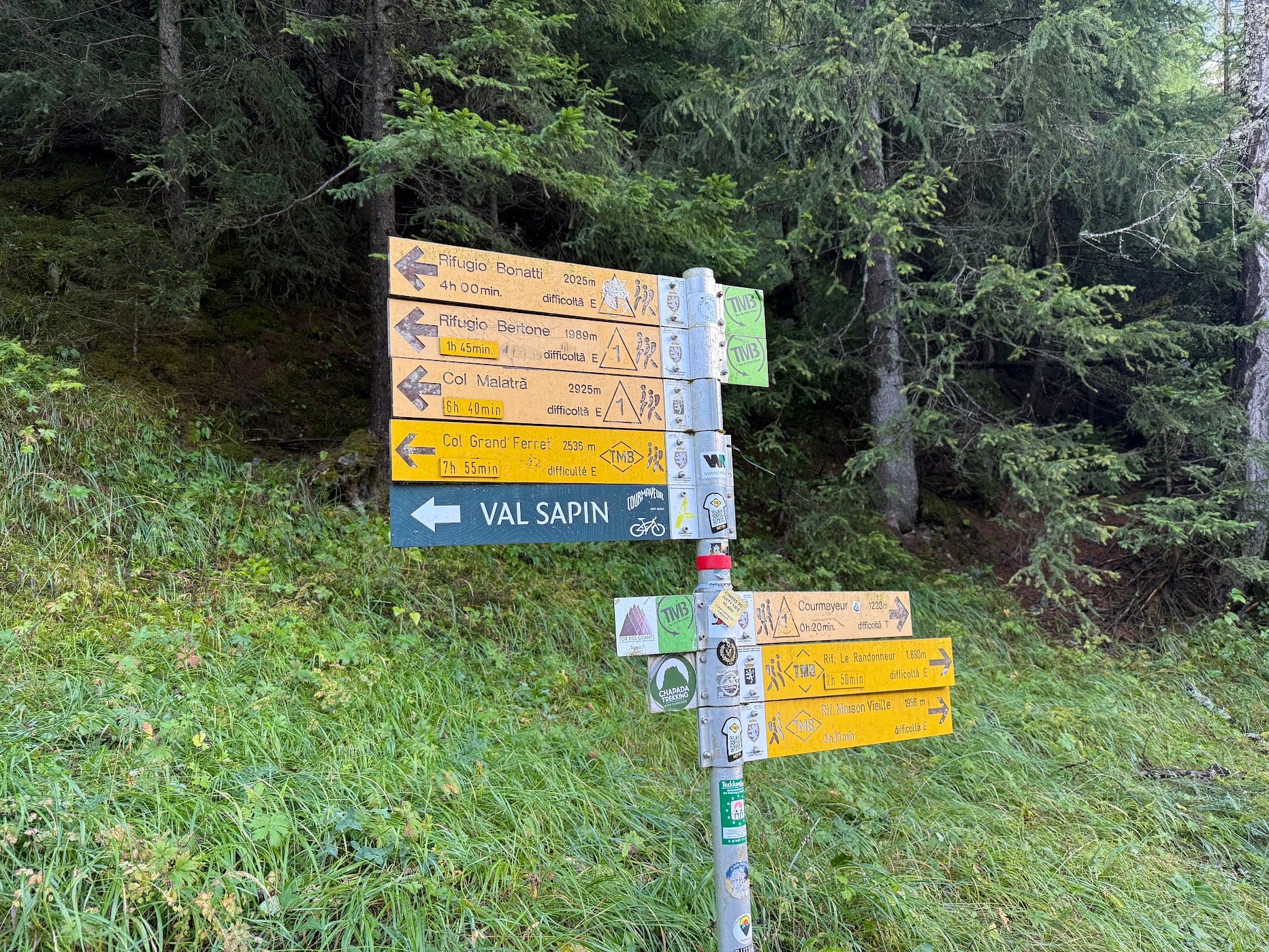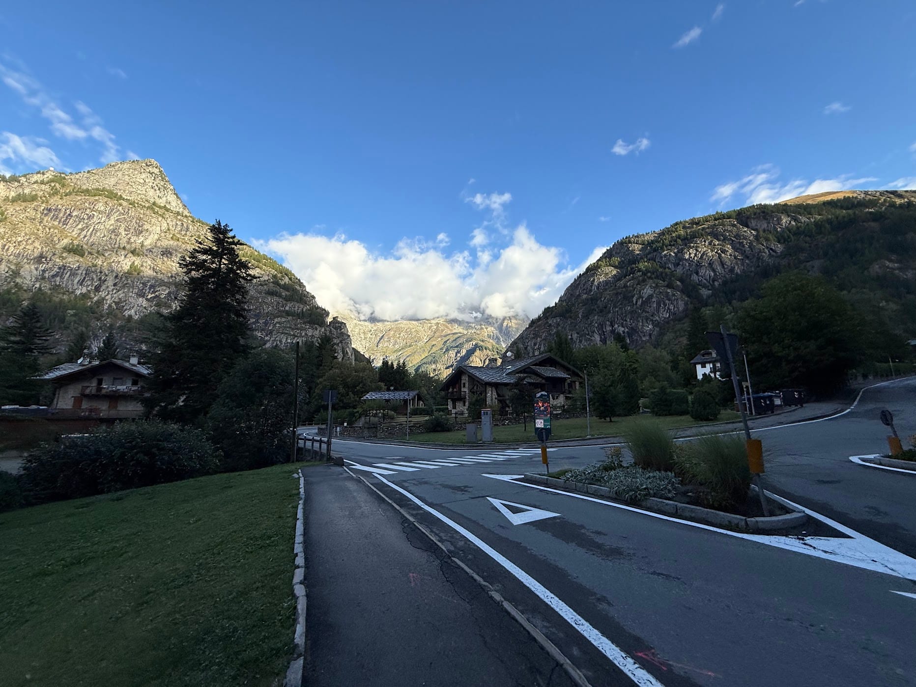 Z Courmayeur wyszli艣my strom膮, asfaltow膮 drog膮, na kt贸rej widzieli艣my znaki z TORa: