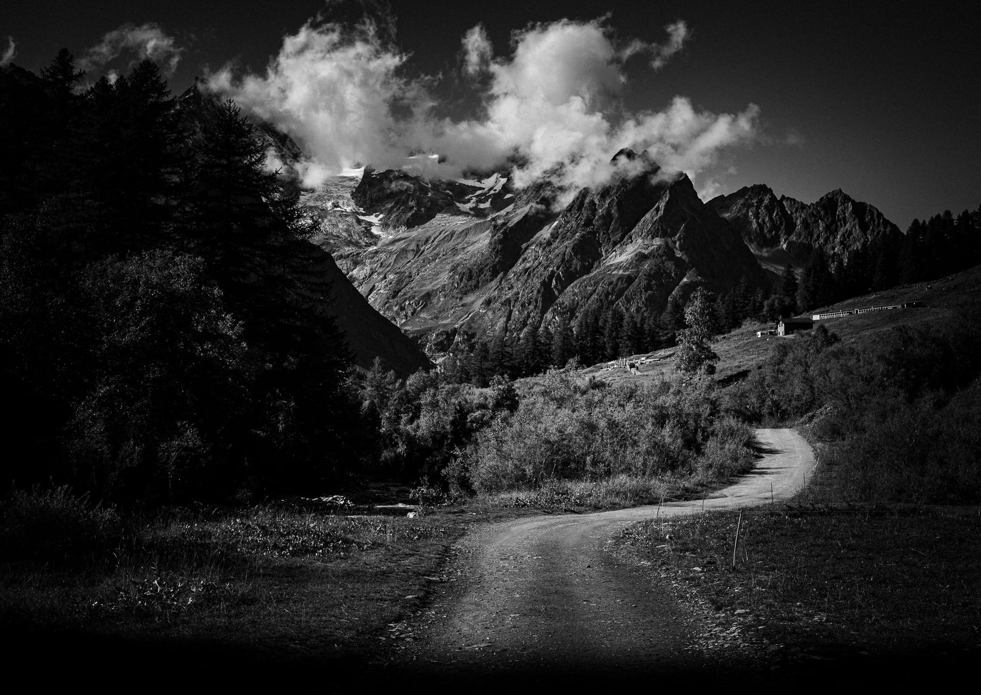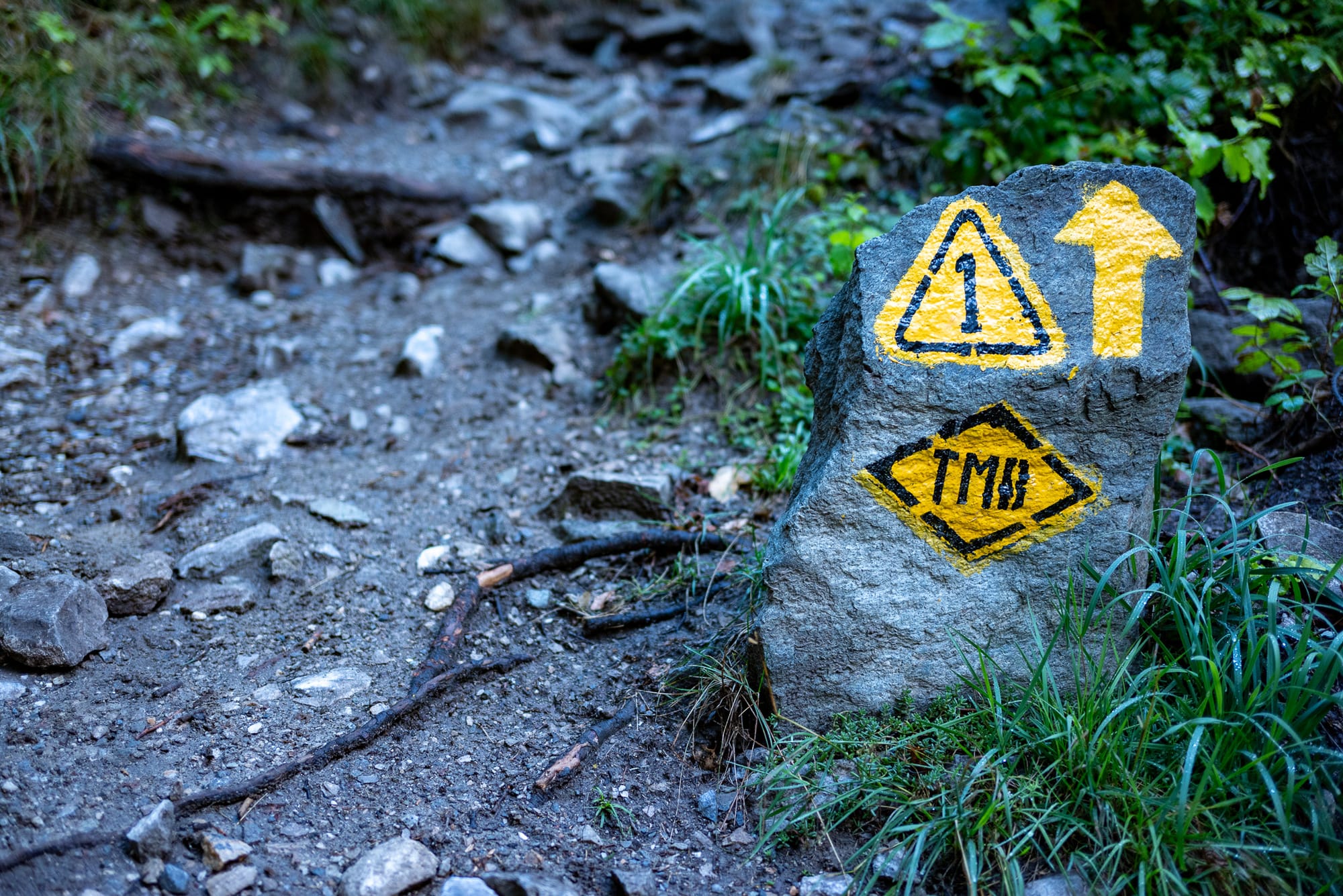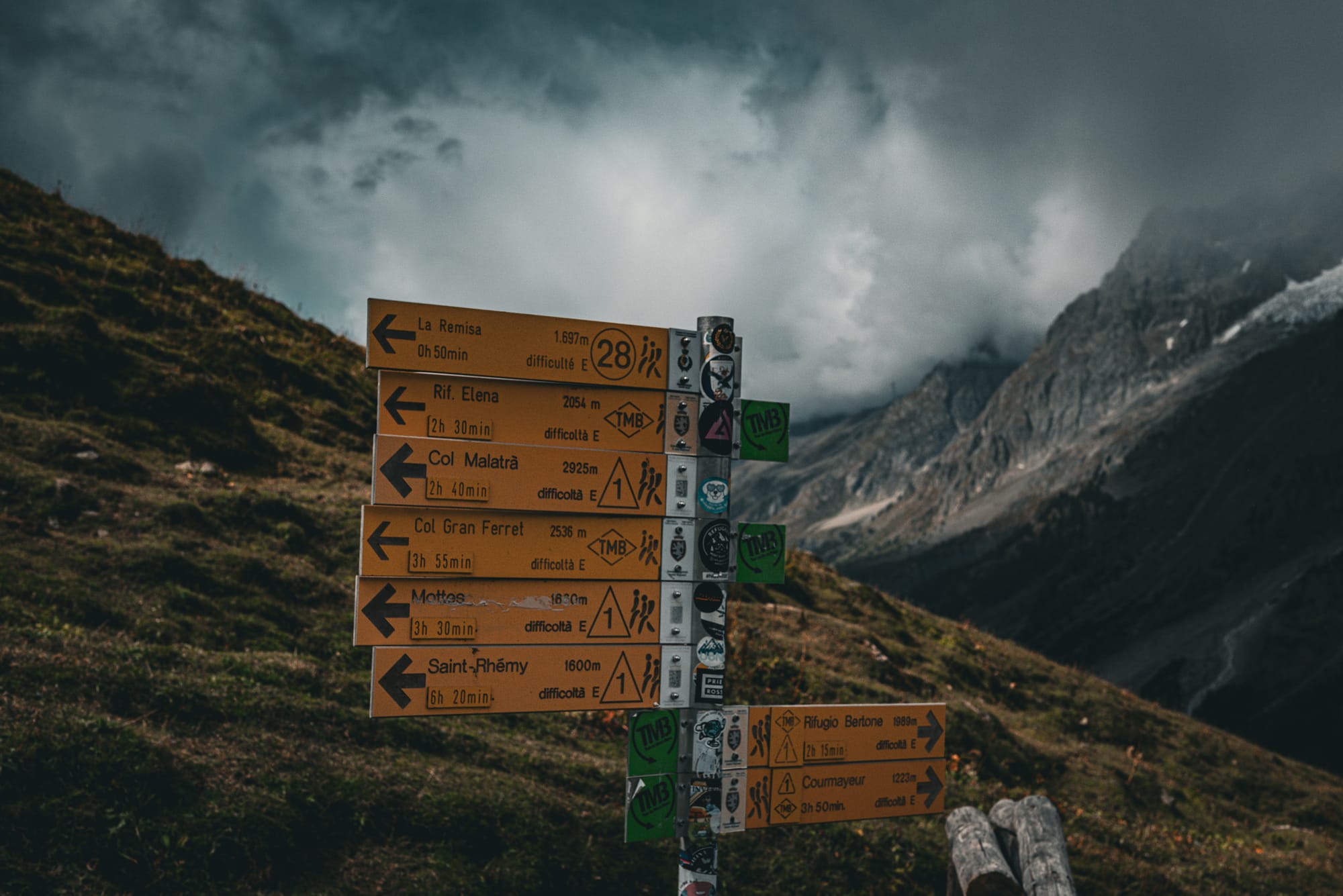 Z Courmayeur wyszli艣my strom膮, asfaltow膮 drog膮, na kt贸rej widzieli艣my znaki z TORa: