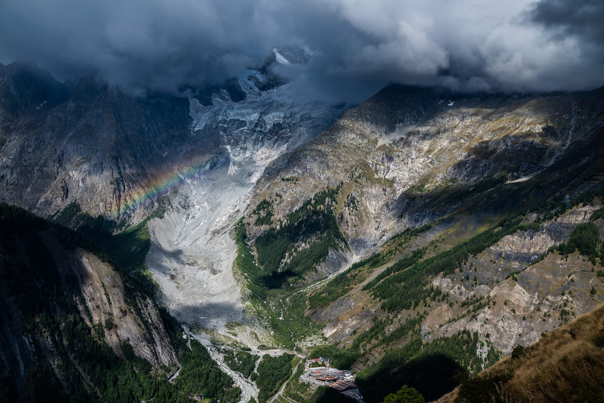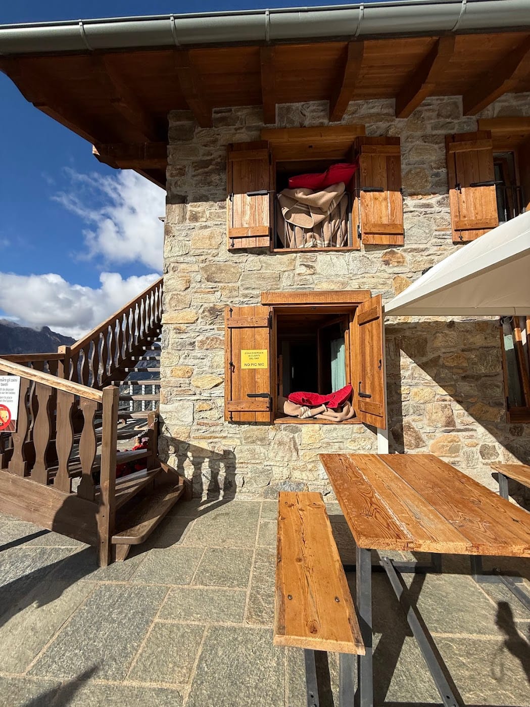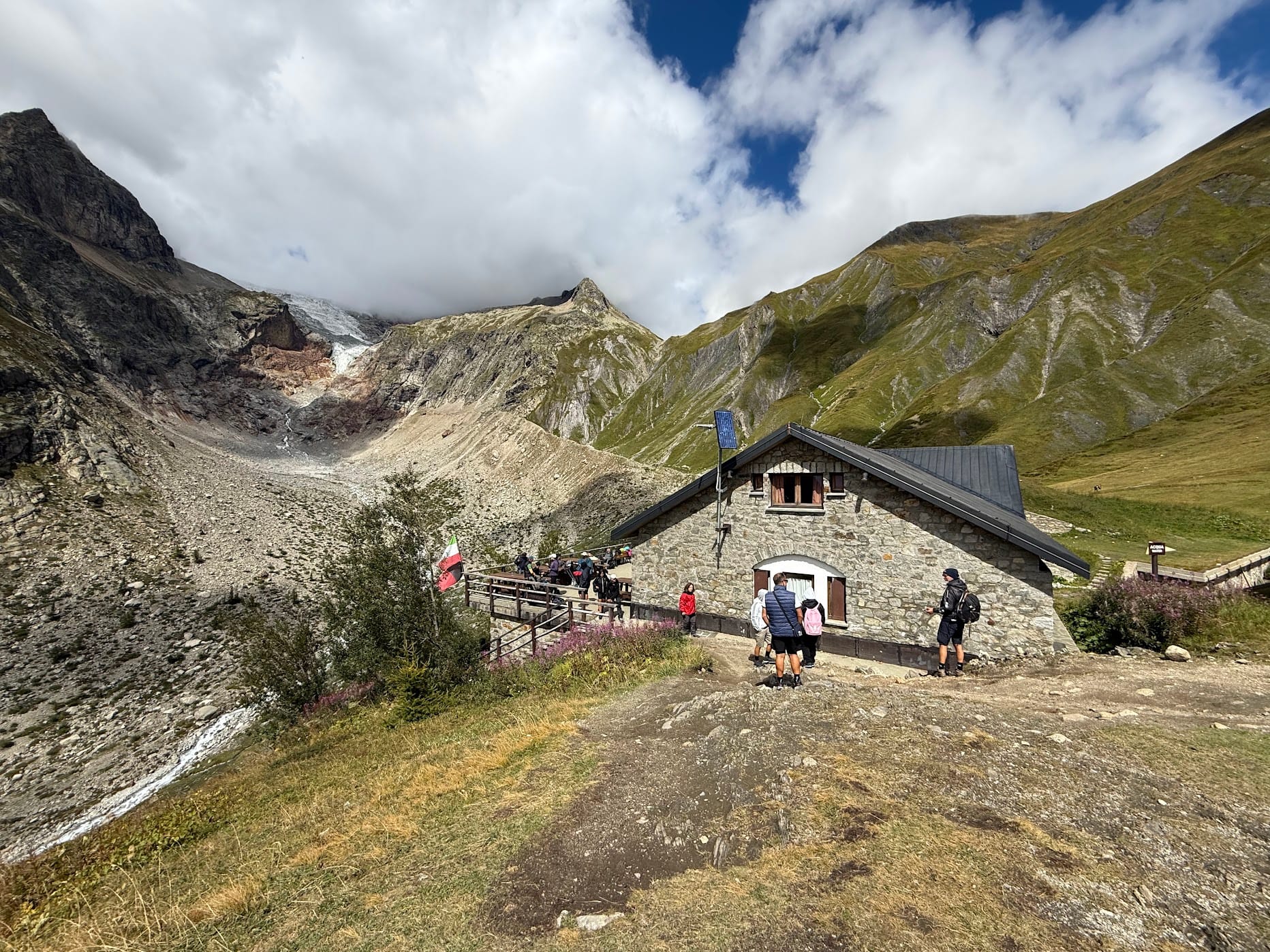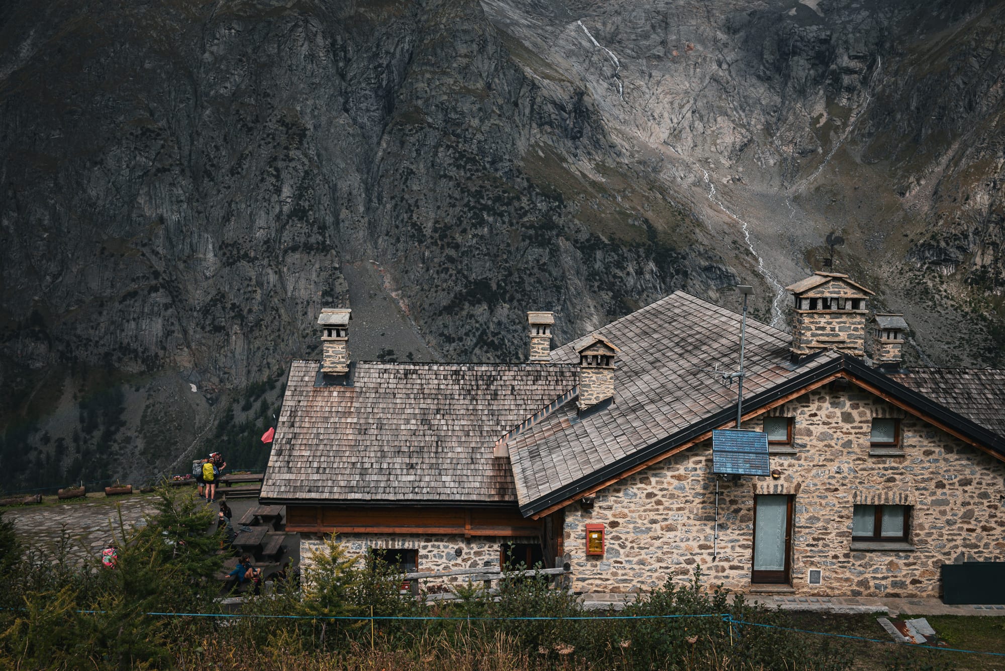 Schronisko to posiada rewelacyjne widoki z tarasu. Budynek znajduje si臋 do艣膰 wysoko nad dolin膮 i jakby na jej ko艅cu, wi臋c mo偶na podziwia膰 lodowce i szczyty Monte Bianco. Tzn. o ile nie s膮 zas艂oni臋te chmurami 馃槂