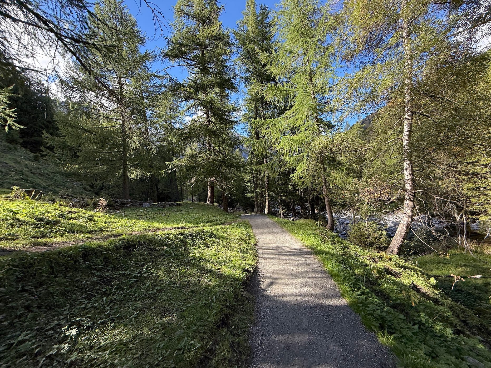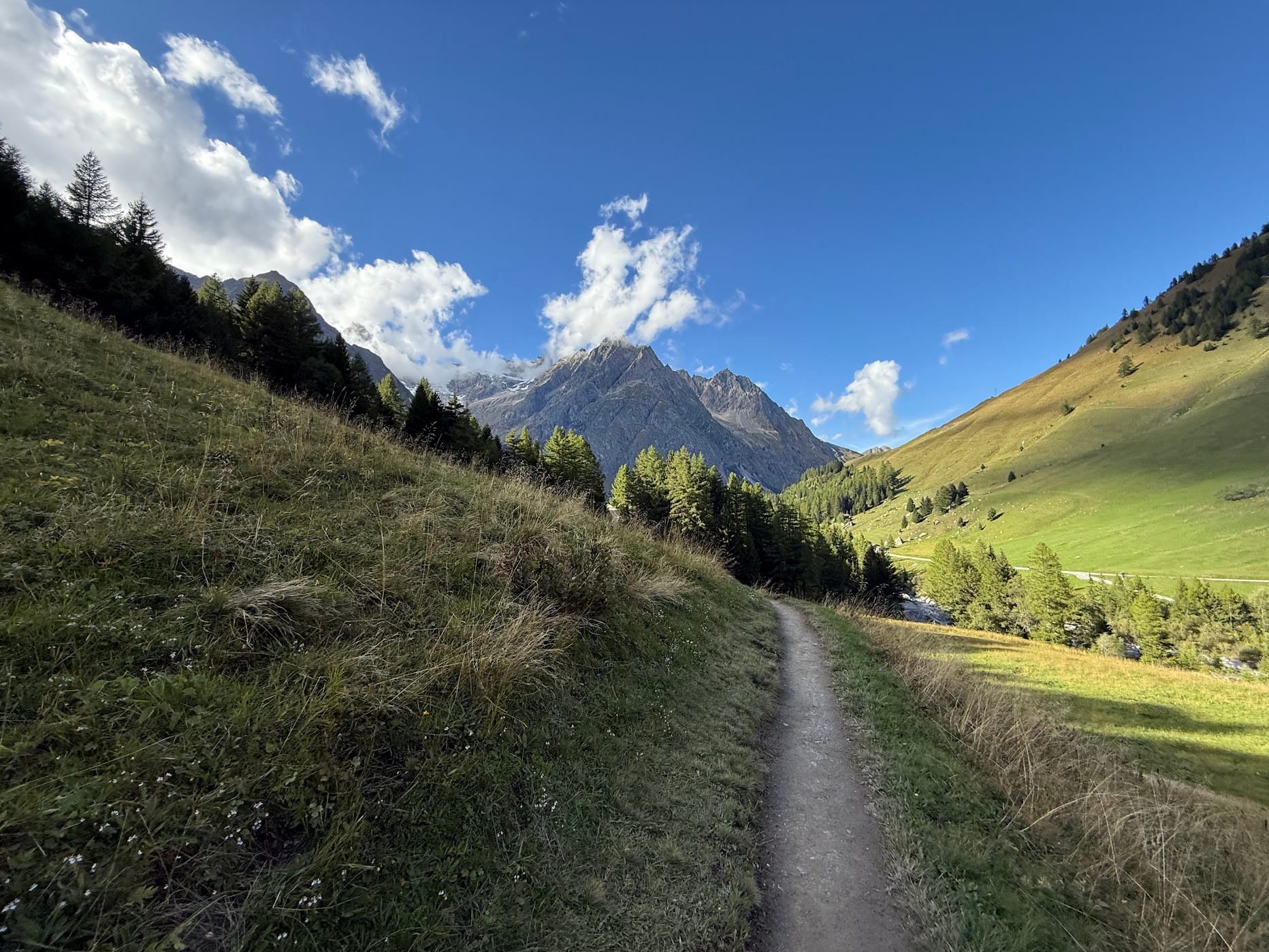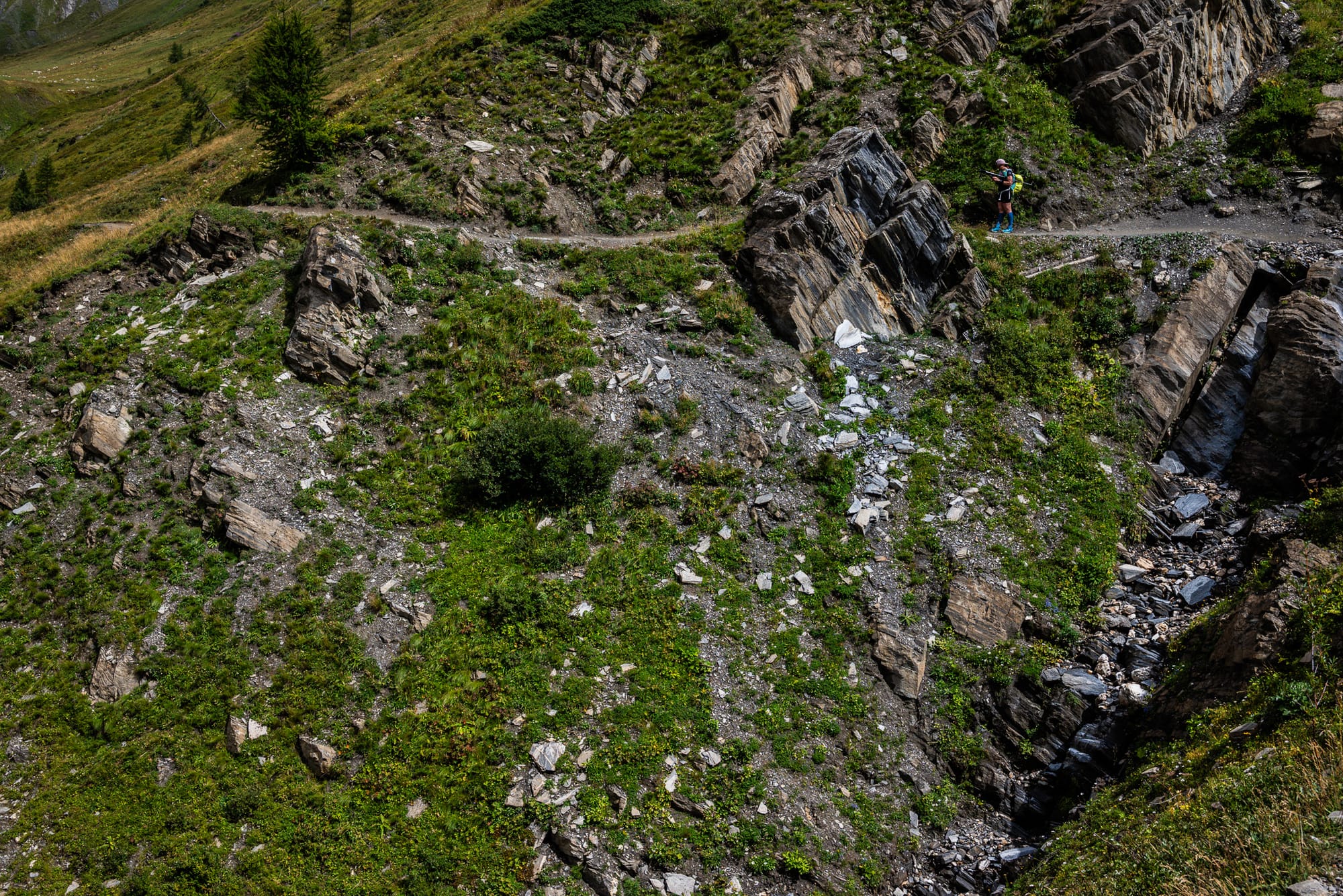 W La Fouly znajdowa艂a si臋 p臋tla autobusowa (pocz膮tek linii na ko艅cu doliny). No i mia艂em szcz臋艣cie, poniewa偶 akurat z do艂u jecha艂 autobus w naszym kierunku. Ponadto te偶 okaza艂o si臋, 偶e on jedzie dok艂adnie w miejsce naszego noclegu (co wcale nie by艂o oczywiste, bo to jeszcze jedna wspinaczka progiem takiej bocznej doliny na jej g贸r臋 w Champex). Nie zastanawia艂em si臋 - stopy ju偶 nie chcia艂y i艣膰 (b膮ble), 30km w nogach, przed nami jeszcze dwa dni, wi臋c zdecydowa艂em, 偶e nie id臋 dalej i po prostu w miejscu noclegowym zrobi臋 porz膮dek z b膮blami. A no i ogarn臋 nam kolacj臋, bo znowu si臋 p贸藕no robi艂o i znowu ten sam problem, co zawsze: "czy cokolwiek b臋dzie otwarte, 偶eby co艣 zje艣膰". Ostatnie moja fotka z trasy biegowej z tego dnia: