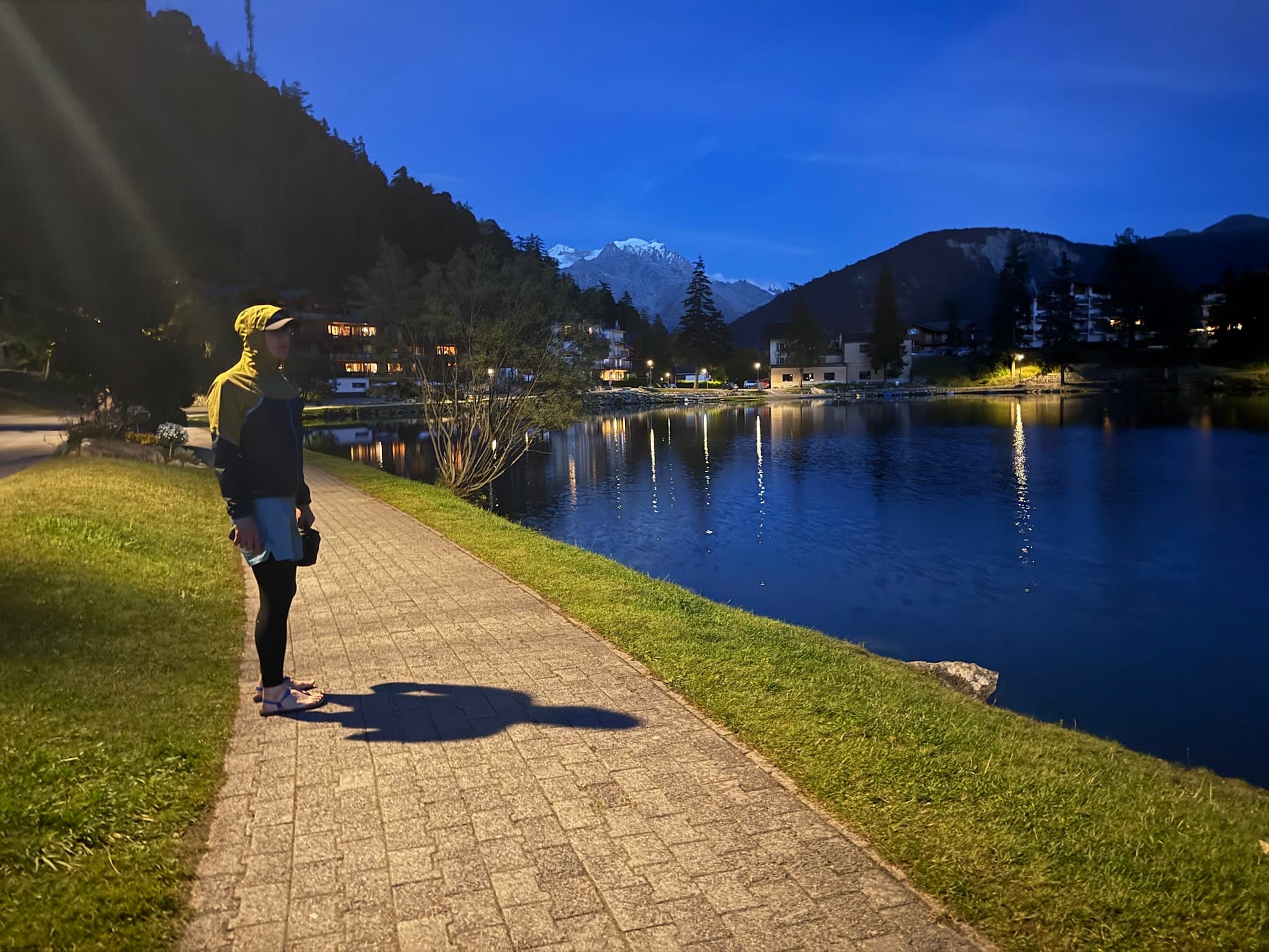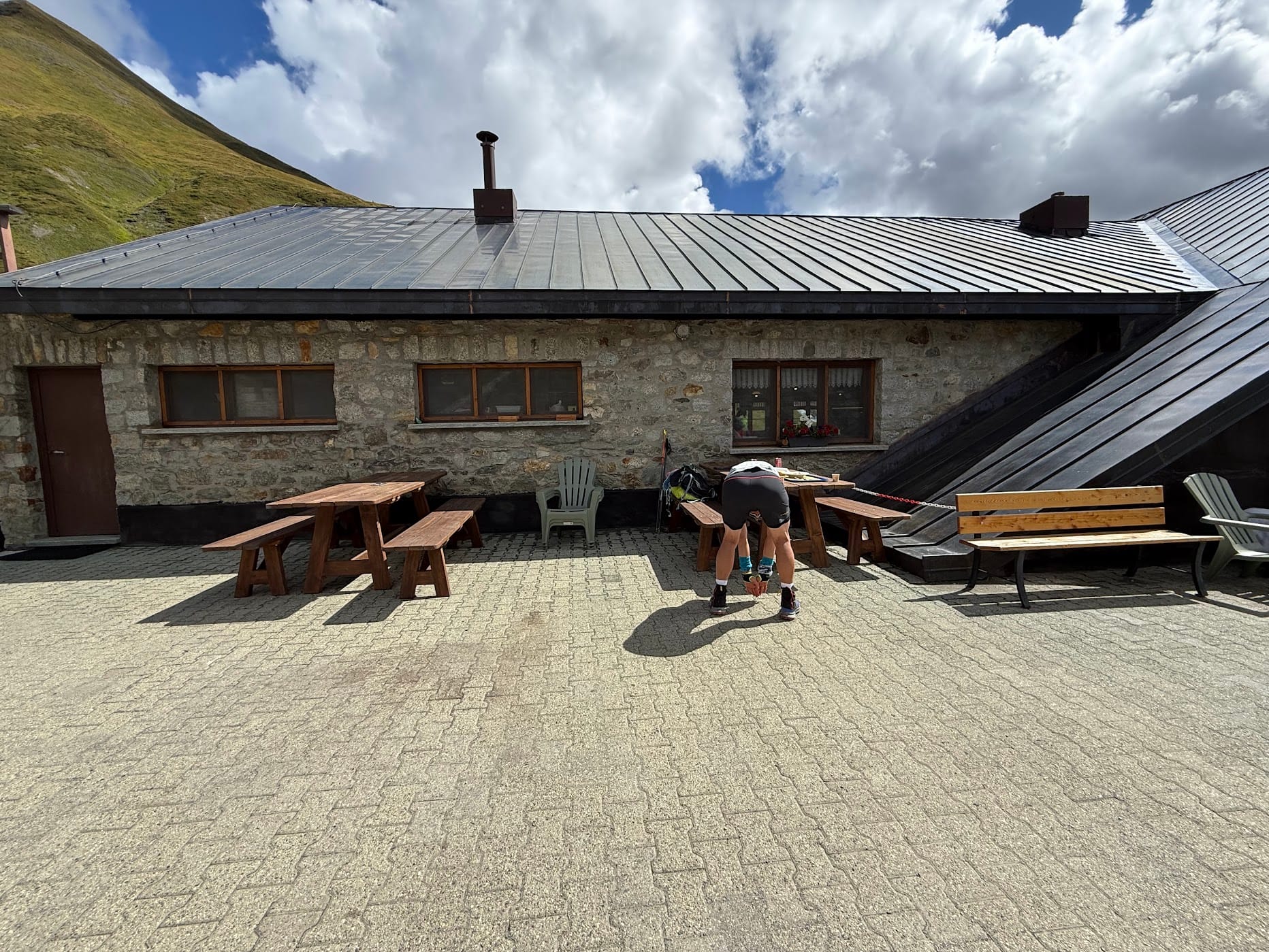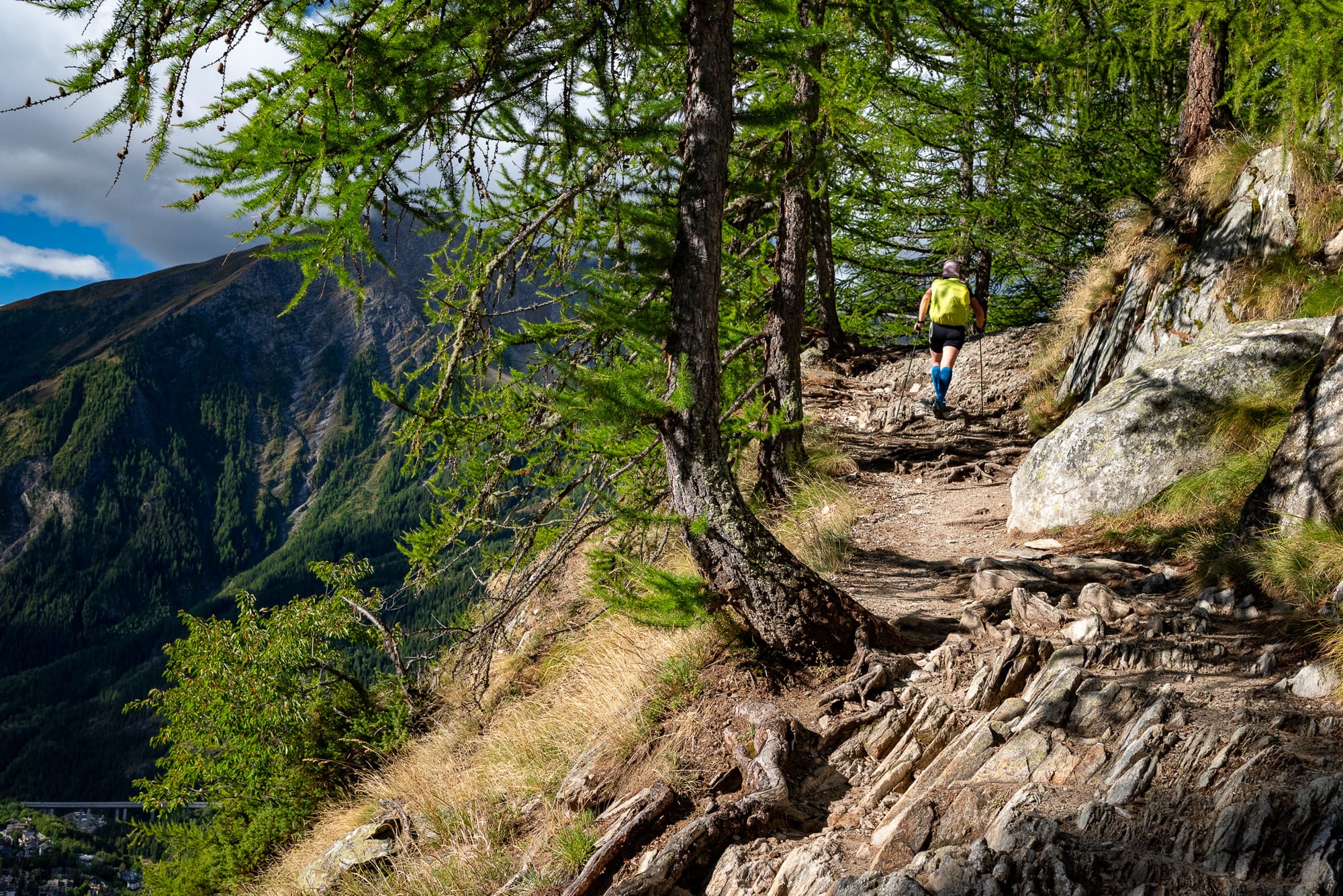 W La Fouly znajdowa艂a si臋 p臋tla autobusowa (pocz膮tek linii na ko艅cu doliny). No i mia艂em szcz臋艣cie, poniewa偶 akurat z do艂u jecha艂 autobus w naszym kierunku. Ponadto te偶 okaza艂o si臋, 偶e on jedzie dok艂adnie w miejsce naszego noclegu (co wcale nie by艂o oczywiste, bo to jeszcze jedna wspinaczka progiem takiej bocznej doliny na jej g贸r臋 w Champex). Nie zastanawia艂em si臋 - stopy ju偶 nie chcia艂y i艣膰 (b膮ble), 30km w nogach, przed nami jeszcze dwa dni, wi臋c zdecydowa艂em, 偶e nie id臋 dalej i po prostu w miejscu noclegowym zrobi臋 porz膮dek z b膮blami. A no i ogarn臋 nam kolacj臋, bo znowu si臋 p贸藕no robi艂o i znowu ten sam problem, co zawsze: "czy cokolwiek b臋dzie otwarte, 偶eby co艣 zje艣膰". Ostatnie moja fotka z trasy biegowej z tego dnia: