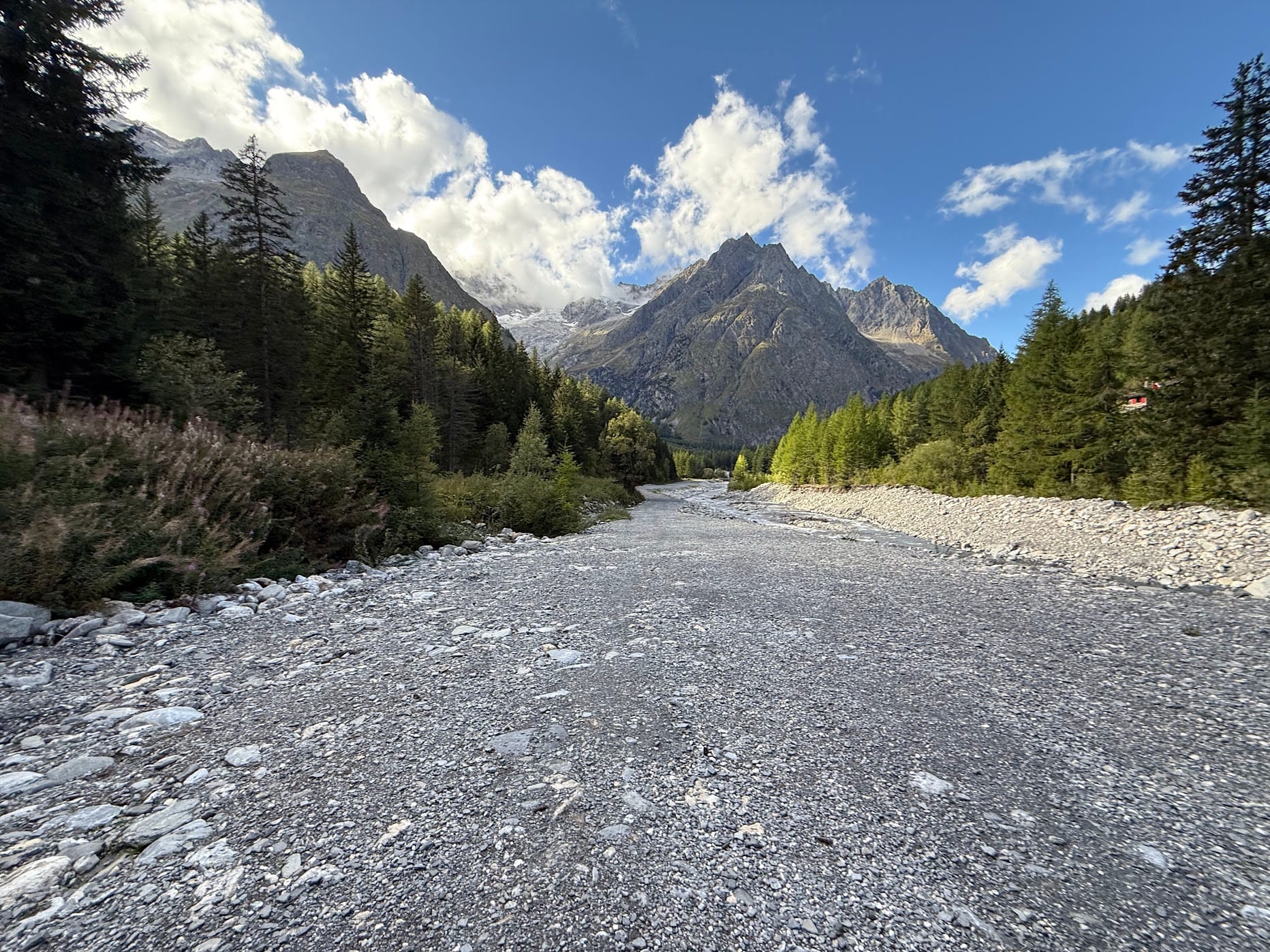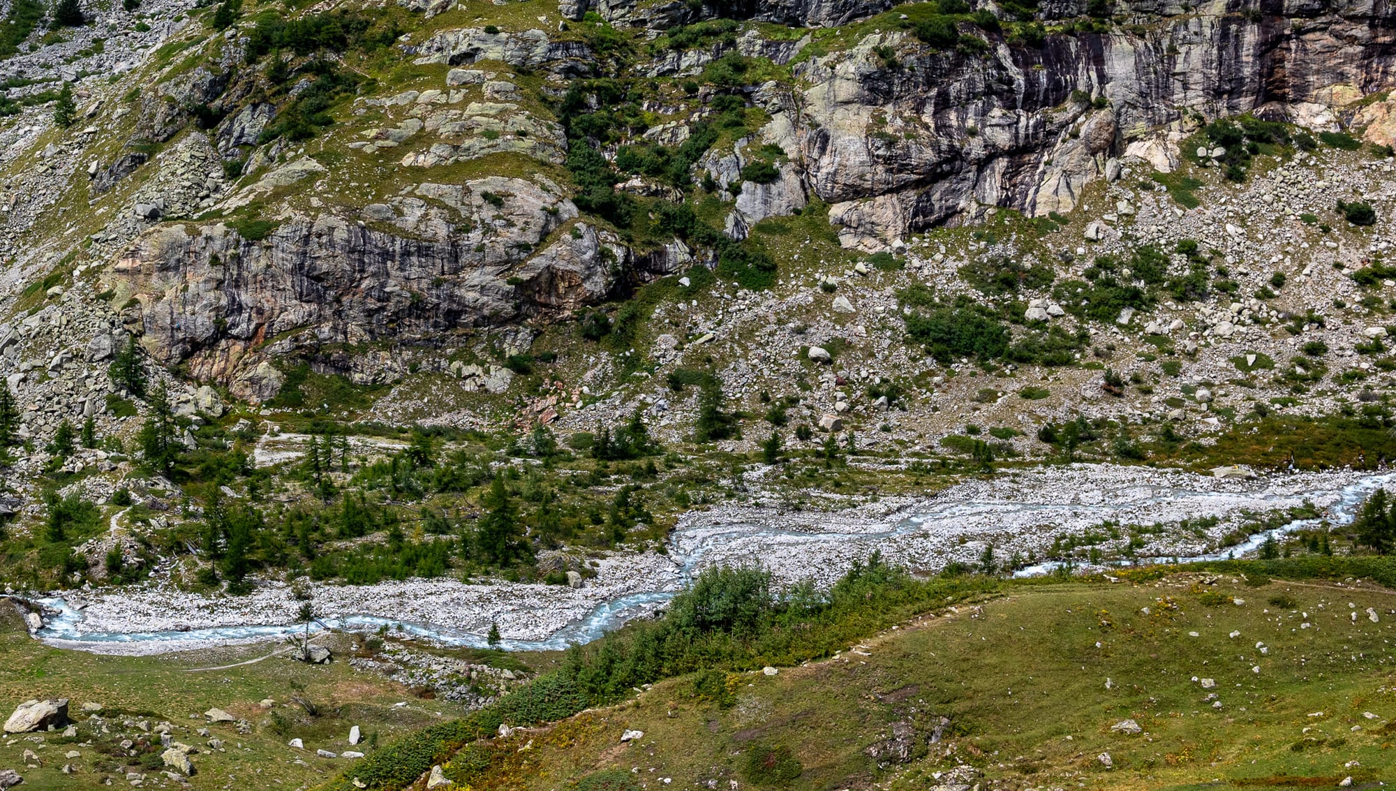 Aga pobieg艂a dalej w d贸艂, takimi oto szutrami, dolin膮 potoku La Dranse de Ferret: