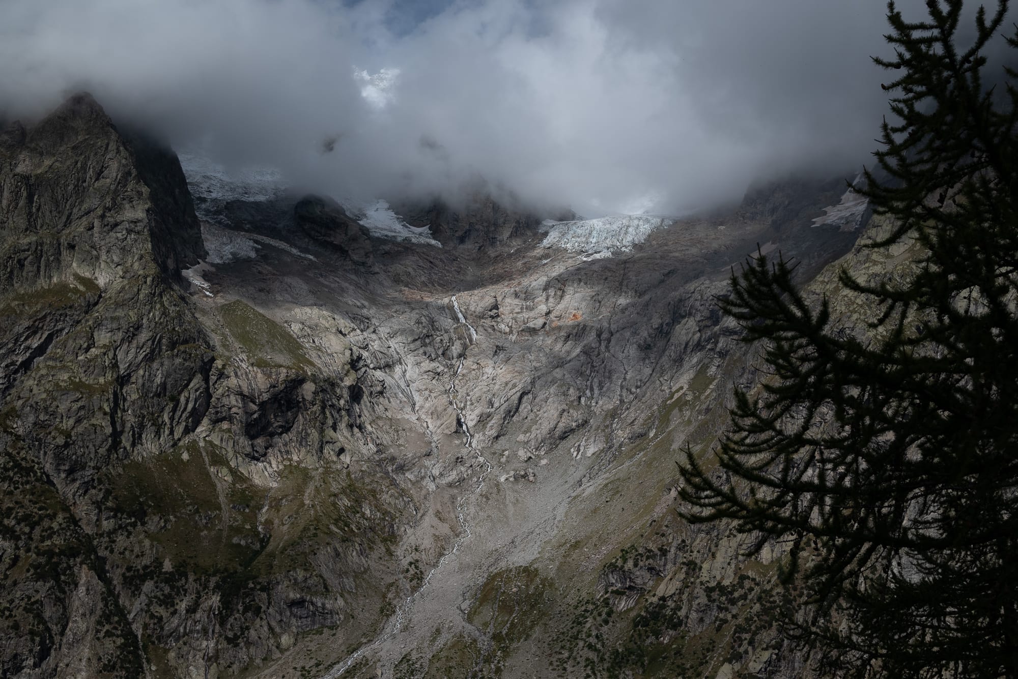 Na poni偶szej fotce (po lewej) mo偶ecie zobaczy膰, jak to si臋 Monte Bianco skitra艂o w chmurze. Z braku laku obr贸ci艂em obiektyw w lewo i sfoci艂em to, co tam by艂o.